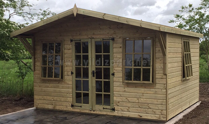 Ahşap Kulübe Solvia 4x4=16 m2 ölçülerinde ürünümüz büyük boyutlandırılması sebebiyle bahçenizdeki oturma takımlarınızı , şezlonglarınızı , Bahçe aletlerinizi depolama sağlayabilirsiniz. Ürün grubunda 150 cm Çift açılır ahşap kapı , 3 adet doğrama ahşap pencere bulunmaktadır.