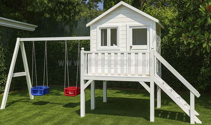 • Ahşabın insan sağlığına zararsız ahşap su bazlı beyaz renk boyanması ile bahçenize doğal ve sıcak bir atmosfer katarken, çocuklara kendi küçük dünyalarını yaratma imkânı veriyor.