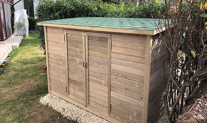 Eco Ahşap Malzeme kulübesi 1x2 =2 m2 boyutlandırmasıyla bahçe malzemelerinizi korumak ve muhafaza etmek için uygun bir üründür.Ürün gurubunda kürek,tırmık,Çim biçme makinası gibi Aletlerinizi Çok rahatlıkla muhafaza edebilirsiniz.Vakum emprenye edilmiş çam ağacı yapısıyla uzun süreler kullanım imkanı sağlar.