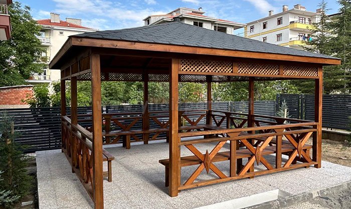 Rustik Ahşap Kamelya Modelimiz Park ,Bahçe alanlarında Site ve Apartman ortak alanlarınızda Emprenyel edilmiş çam ağacı yapısından dolayı uzun süreler kullanabileceğiniz Bir ürün grubudur.Teak Rengi Ahşap Su bazlı boya kullanılmıştır. Uv dirençli Ahşap su bazlı vernikli boya yapısından dolayı uzun süreler kullanım sağlanabilir.